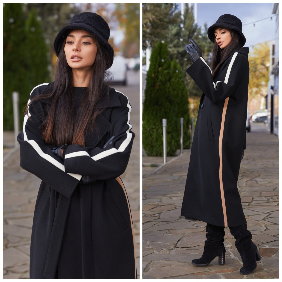 Стильне жіноче класичне 3-х кольорове пальто ПВ-187