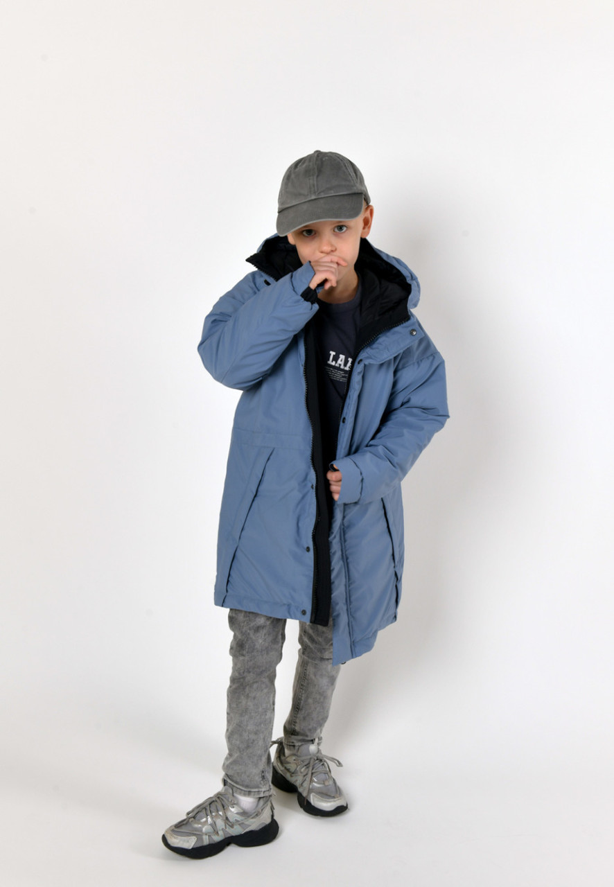Зимова парка для хлопчиків від 6 до 16 років. Наповнювач екопух, екологічний і водостійкий, витримує холод до -25 °C. Місткий капюшон на кулісі. Манжети на гумці для додаткового захисту від холоду. Бічні кишені на блискавці. Застібка кнопки і блискавку з вітрозахисною планкою.