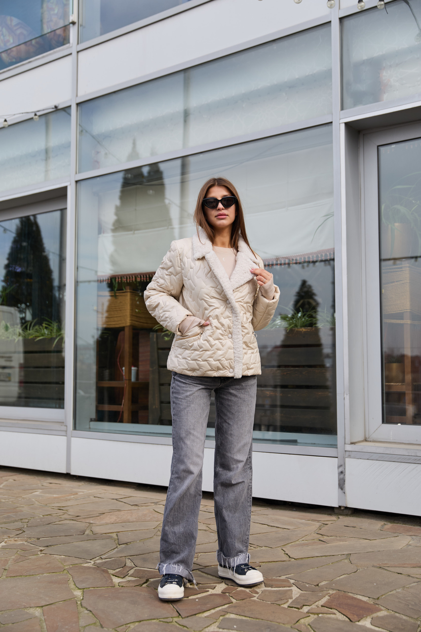 🌟 Стильна укорочена куртка з водовідштовхувальної стьобаної плащівки з контрастною обробкою екохутром. Англійський комір, практична довжина та актуальний крій — усе, що потрібно для створення образу у прохолодну погоду.