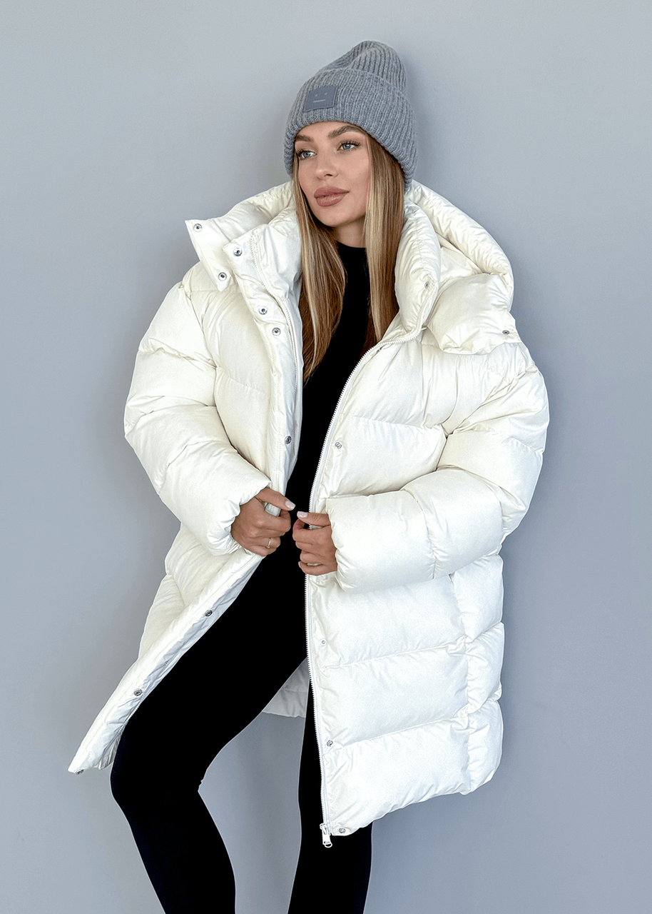 Жіночий подовжений пуховик молочного кольору Максі 01226