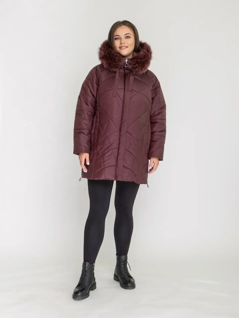 Жіноча зимова куртка великих розмірів із хутром у кольорі марсала. Li-174 у розмірах 56-66
