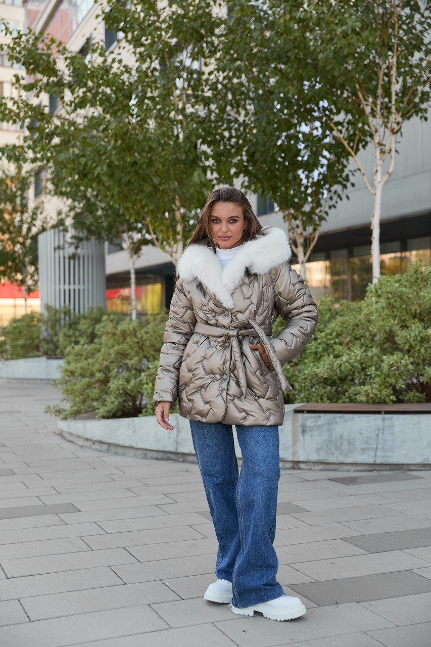 Коротка куртка із стьобаної плащової тканини та еко хутра високої якості.