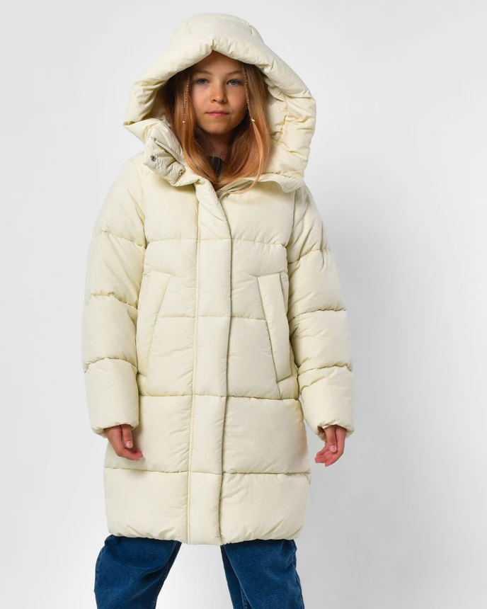 Зимовий пуховик для дівчинки на екопуху 8369 молоччного кольору